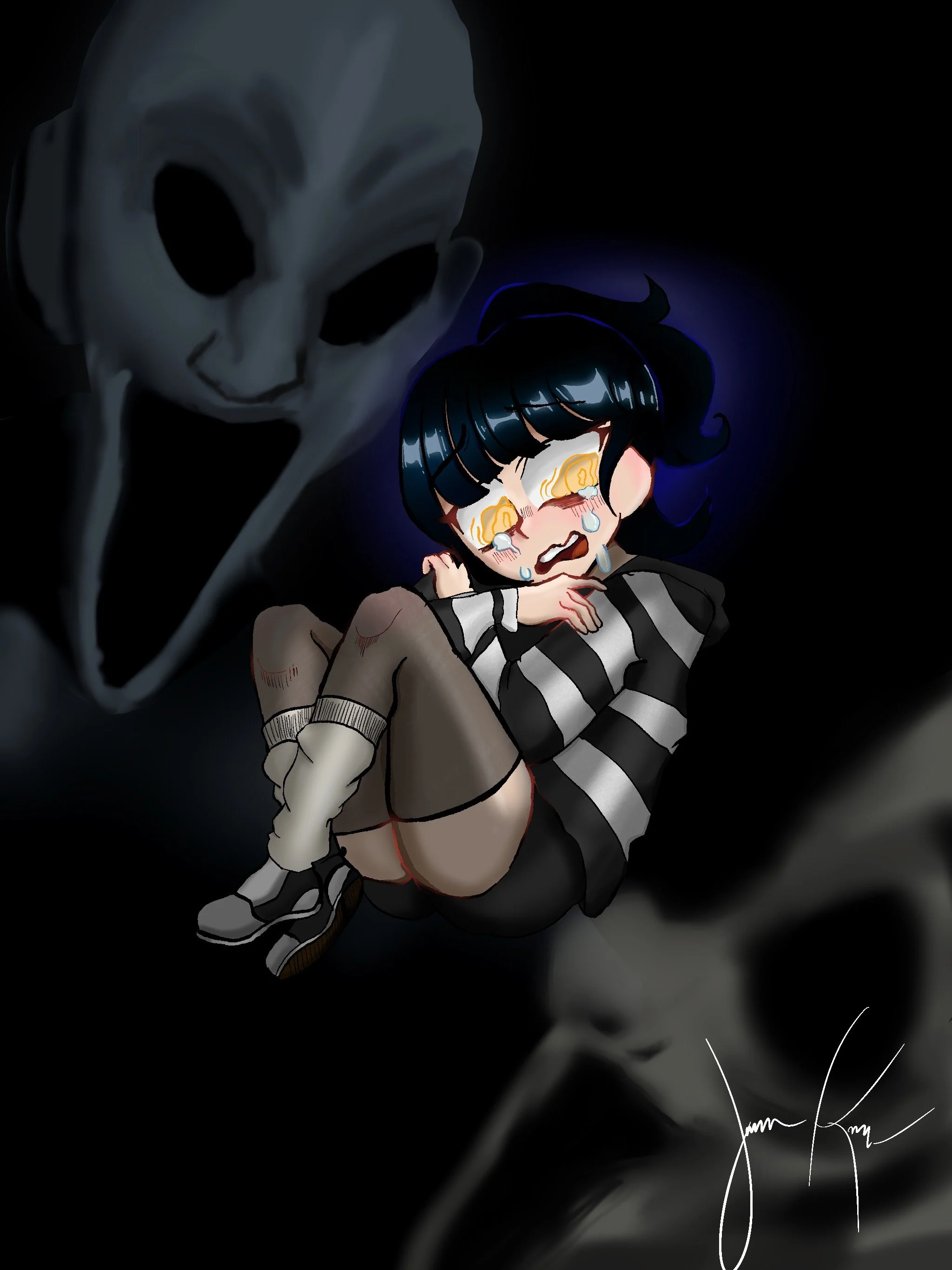 Rainbows faintly jump and twist inside my room, enticing me. But a figure appears on the outside of the wall.